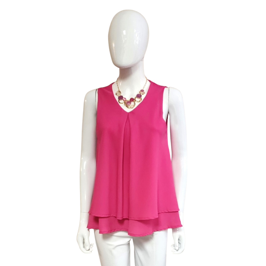 Le débardeur Tango Mango T6999 est un Haut léger sans manches à enfiler, col en V, conçu au Canada pour une coupe décontractée, avec un pli creux sur le devant et un ourlet arrondi à double épaisseur.