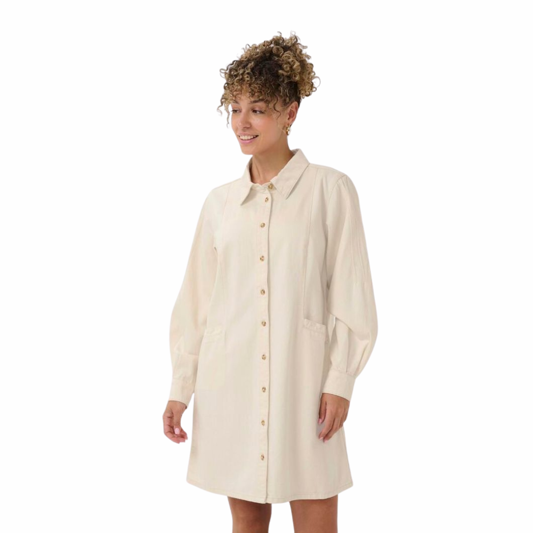 Robe-chemise à la coupe décontractée et à boutons sur le devant, dotée d'un col classique et de manches longues. Sa longueur genou polyvalente assure confort et style en toutes occasions.