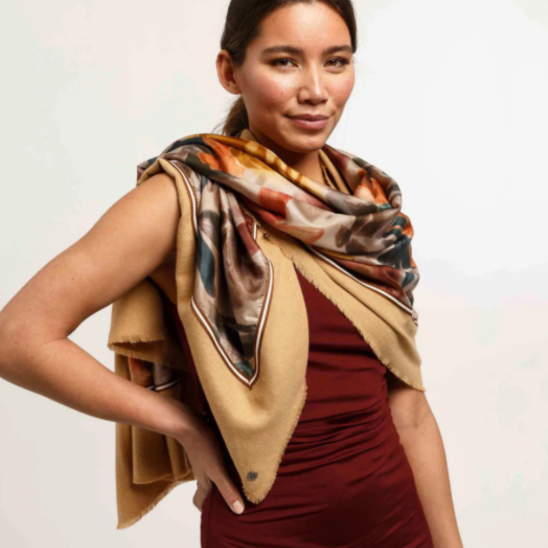 L'élégante étole patchwork FRAAS (70 x 180 cm) est une pièce unique : un foulard en soie à motif floral est cousu sur une étole unie en viscose. Cette combinaison fait de cette grande étole un accessoire polyvalent et raffiné. Portée autour du cou ou drapée avec élégance sur les épaules, elle est parfaite en toute occasion. Un indispensable pour une allure élégante !