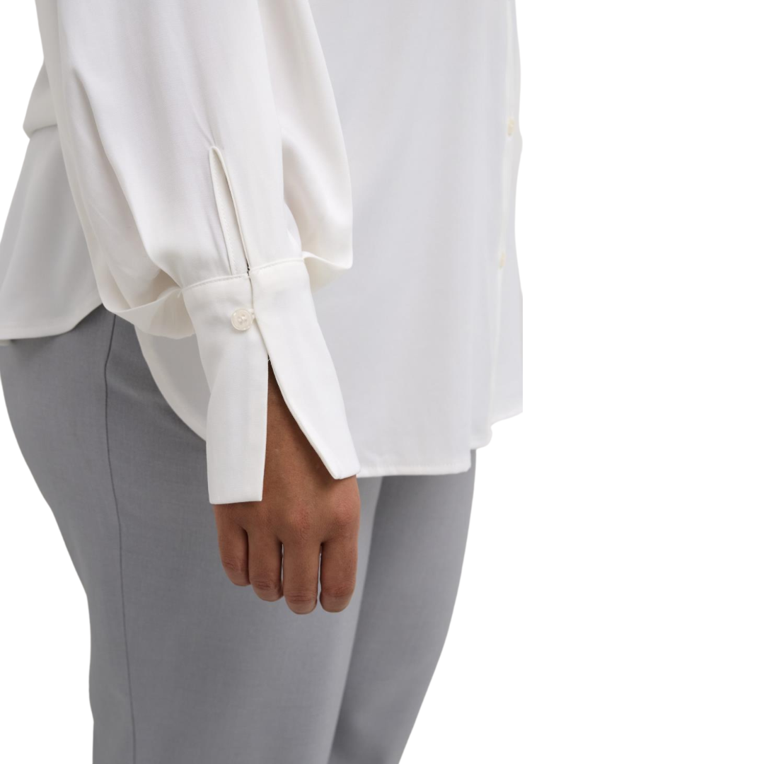 Jolie chemise de Kaffe Curve., La chemise a une patte de boutonnage sur le devant, des manches longues et un col classique., La forme trapèze légère et le bas
