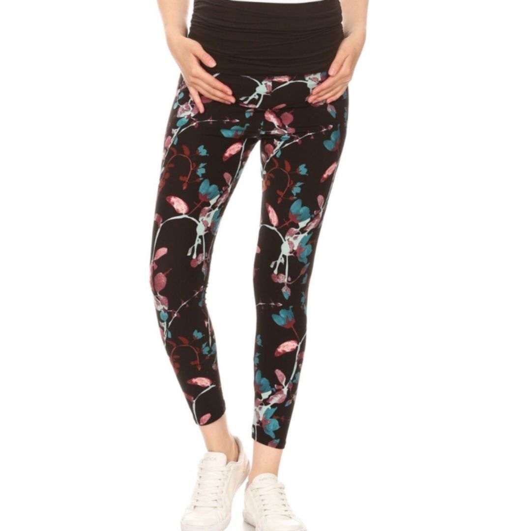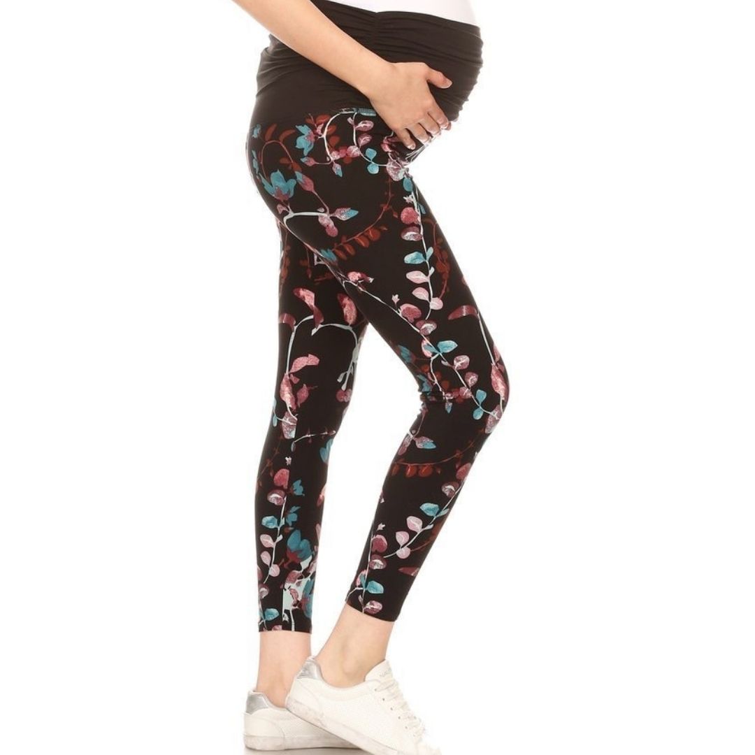 Leggings de maternité très confortable pleine longueur imprimé floral avec une ceinture élastique.