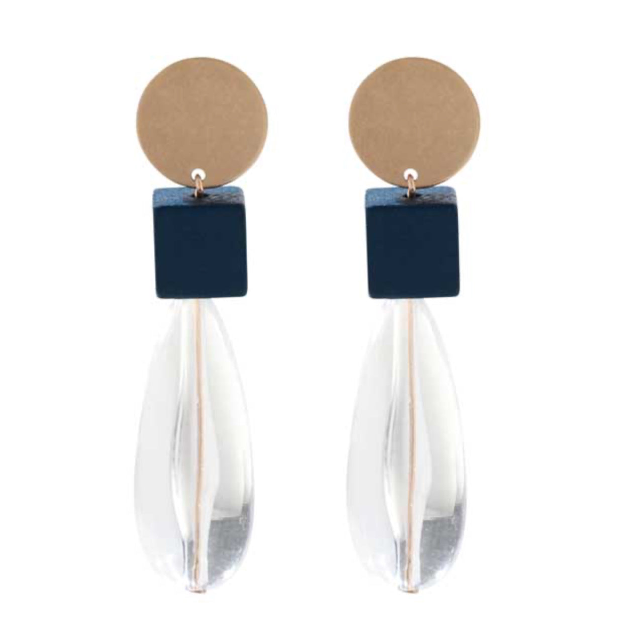 BOUCLES D’OREILLES OR MAT ET CUBE BLEU-MERX