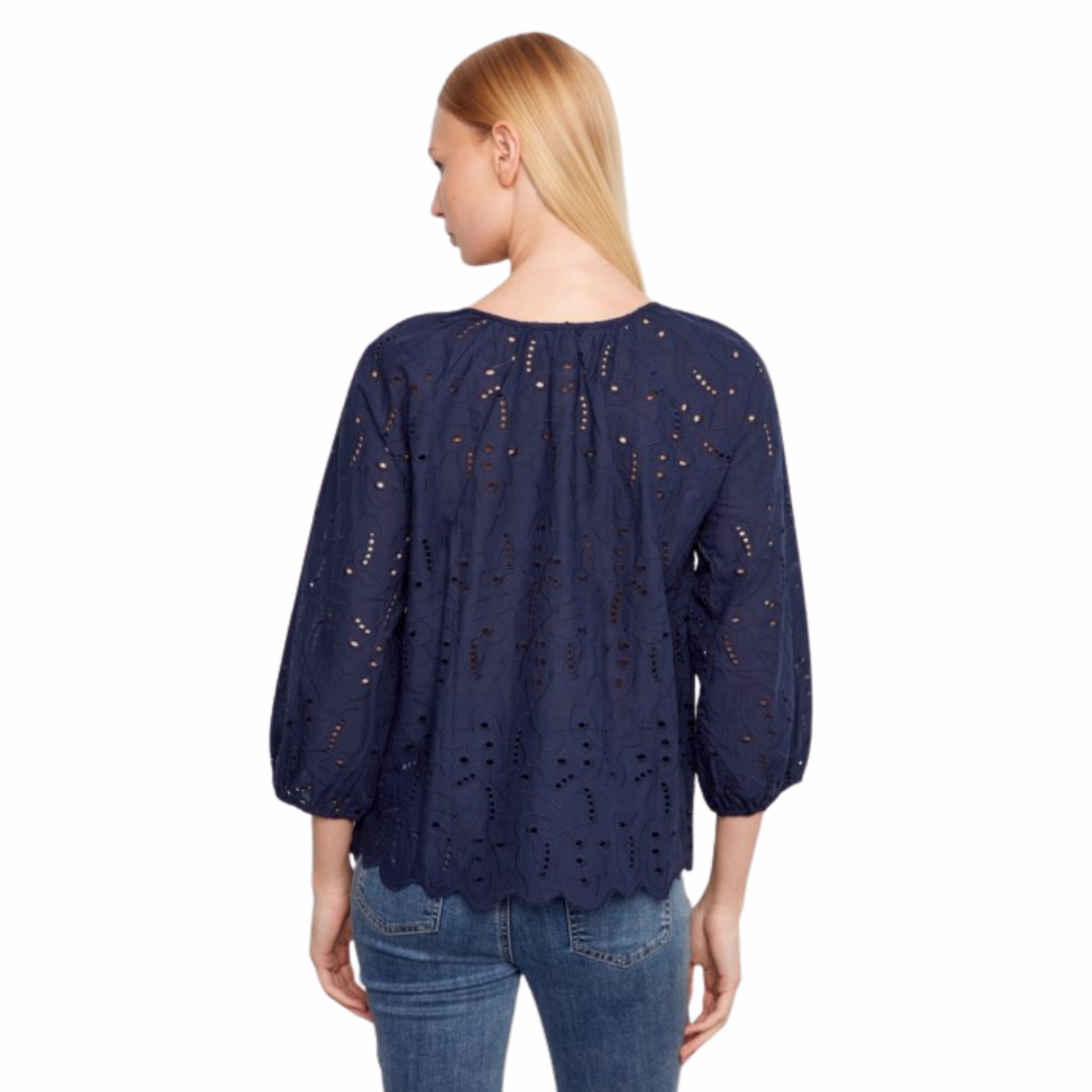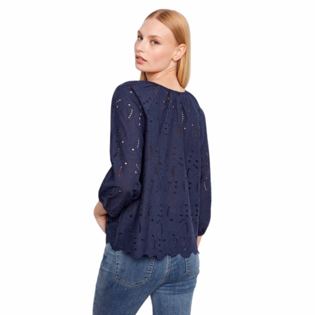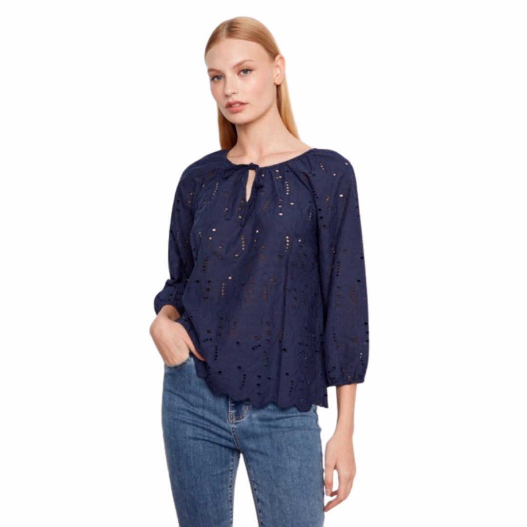 Chemisier à manches raglan 3/4 avec liens à l'encolure crantée
