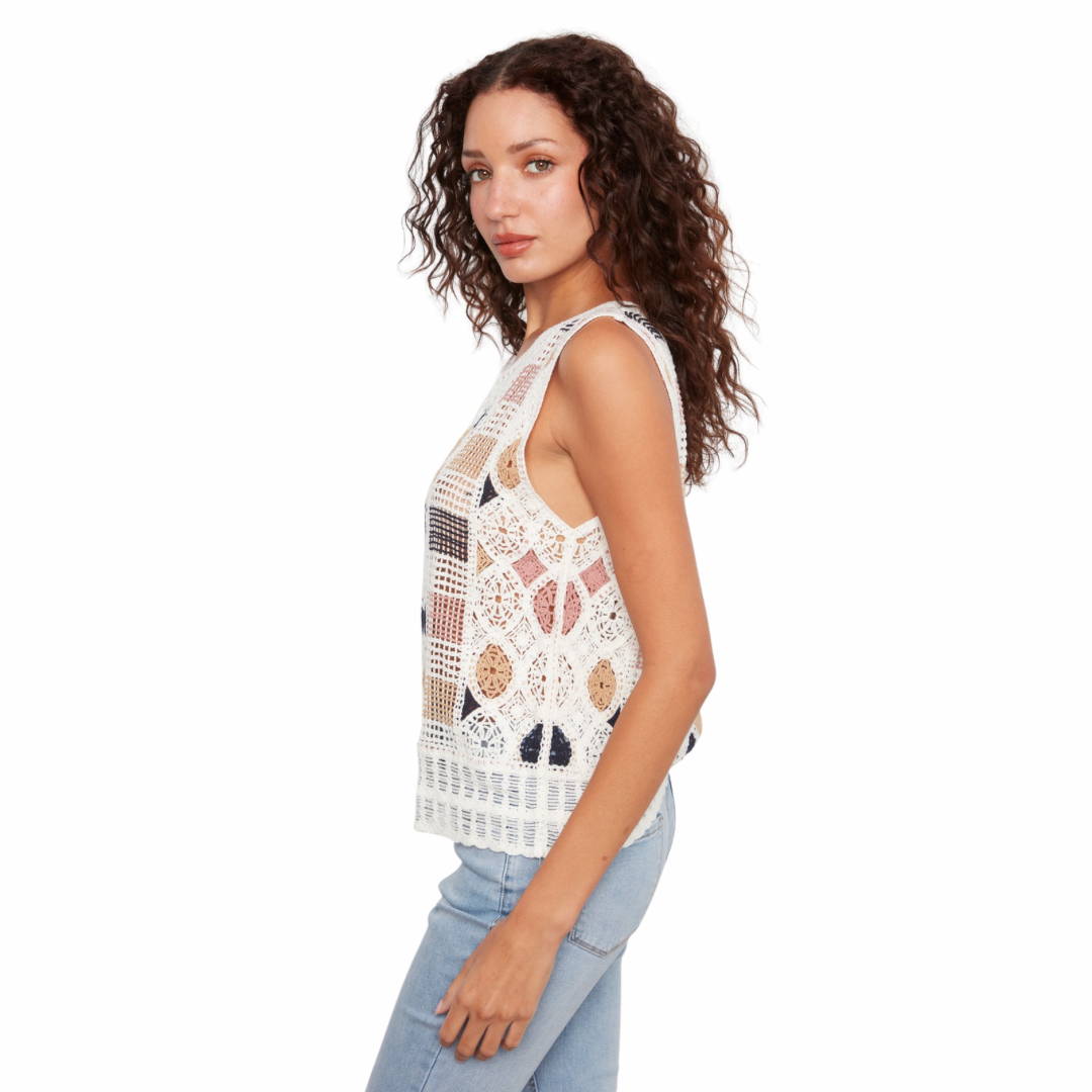 Découvrez notre top Charlie B en crochet, un incontournable de votre garde-robe estivale. Confectionné dans un mélange confortable de 60 % coton et 40 % acrylique, ce top sans manches arbore un motif géométrique captivant qui apporte une touche d'originalité à vos tenues. Le coton respirant offre un toucher agréable, tandis que l'acrylique garantit durabilité et facilité d'entretien. Parfait pour les journées chaudes, ce top polyvalent s'associe facilement à vos pièces préférées pour créer des looks tendance et sophistiqués.