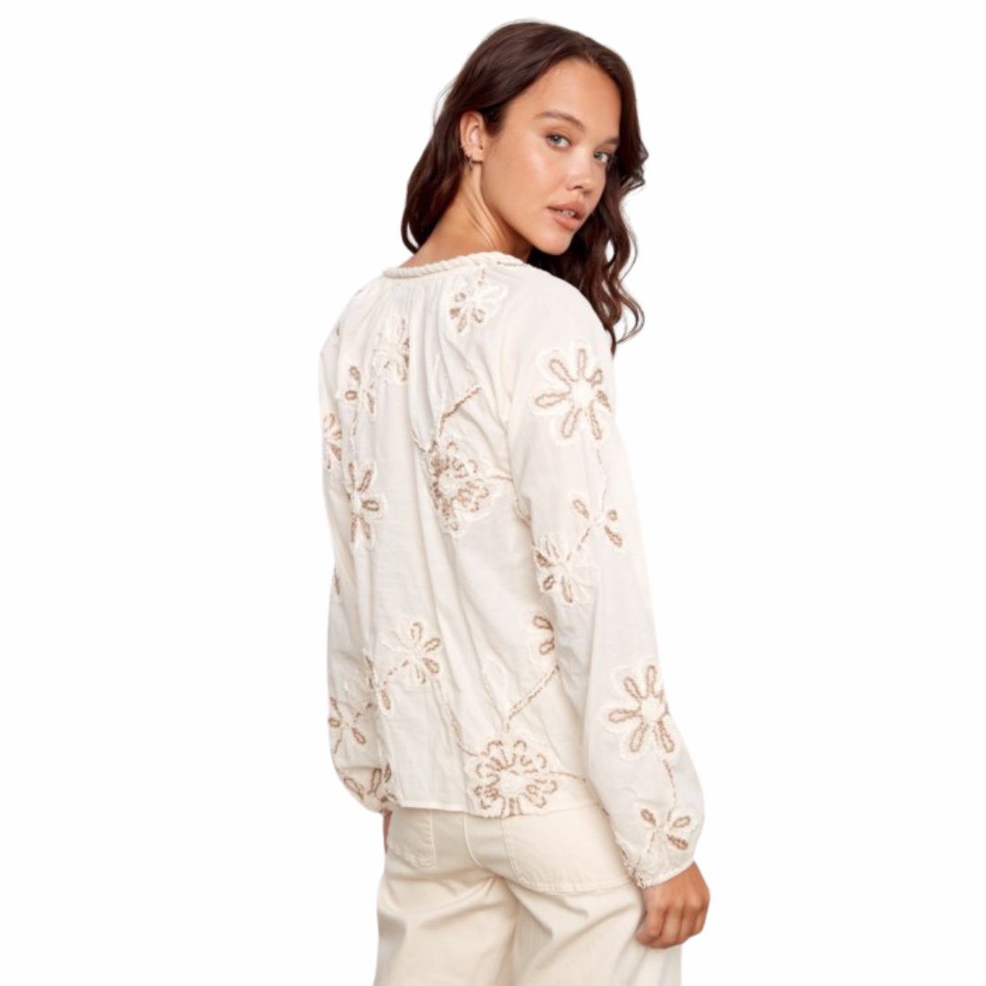 Chemisier à manches raglan en coton texturé brodé
