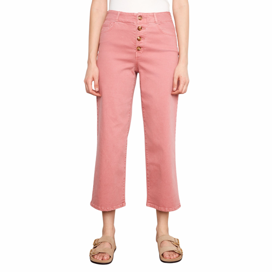 Pantalon droit en sergé couleur twill avec braguette boutonnée