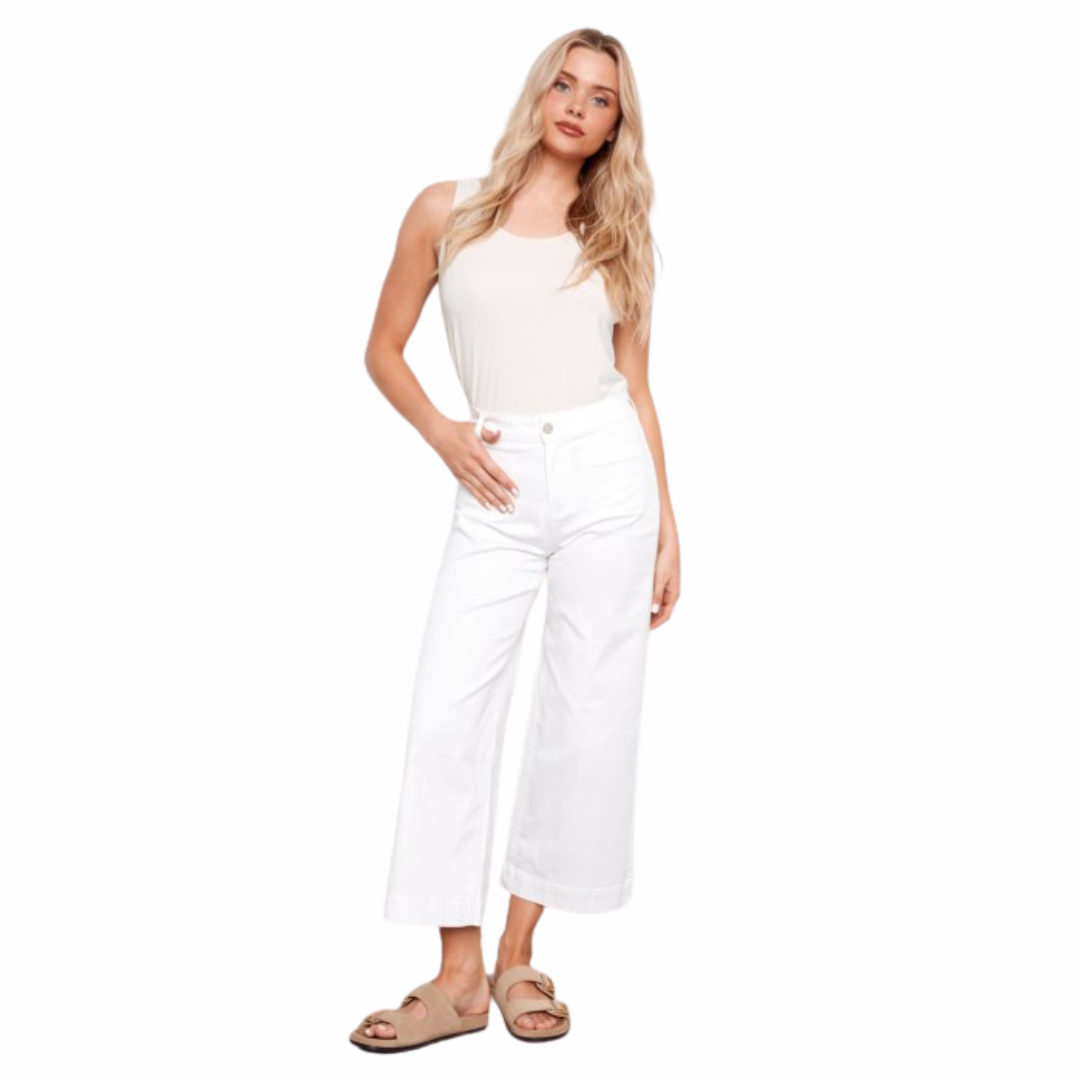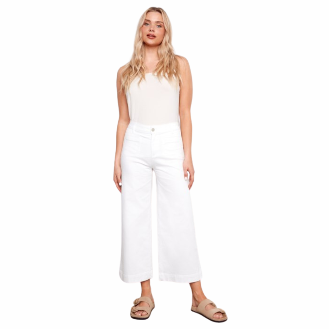 Pantalon à évasement rayé en sergé rayé teint à teinture courte