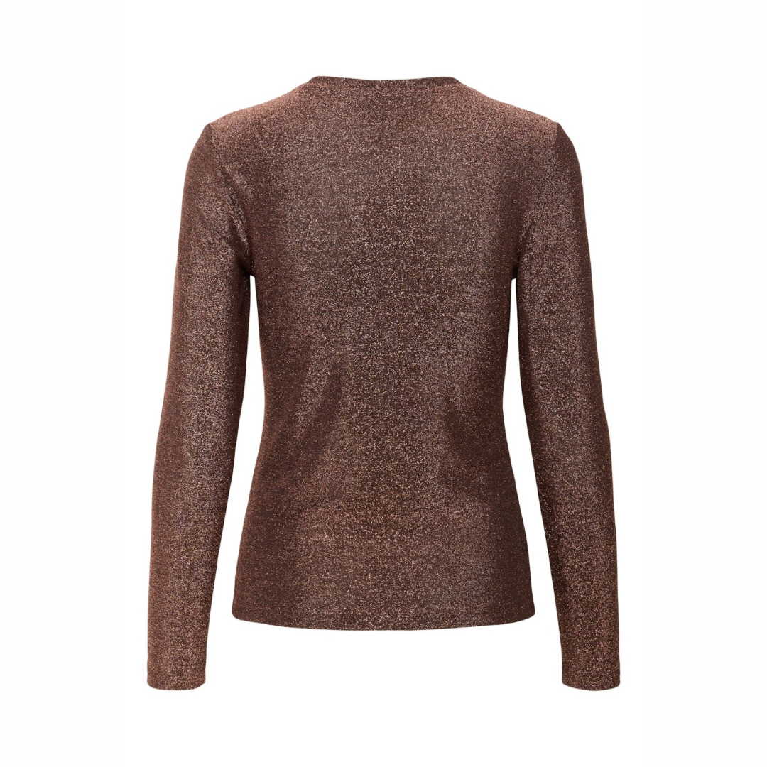 Ce haut à manches longues présente une silhouette ajustée et une brillance subtile. Son encolure ronde classique et son ourlet droit lui confèrent un look intemporel et épuré. Son tissu lisse et légèrement scintillant ajoute une touche d'élégance.