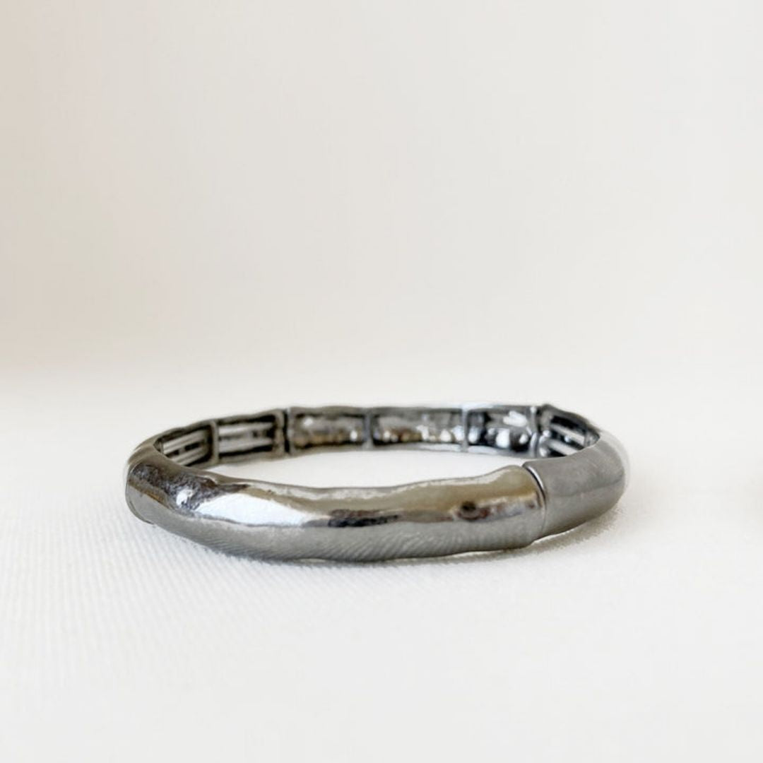 WORN FINISH HAMMERED METAL STRETCH BRACELET - HEMATITE - O/S