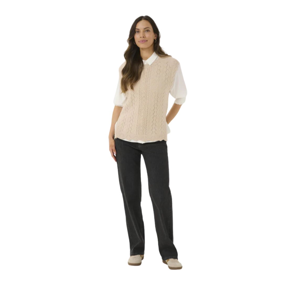 Ce débardeur crème allie confort et élégance grâce à sa composition en viscose, polyester et polyamide.