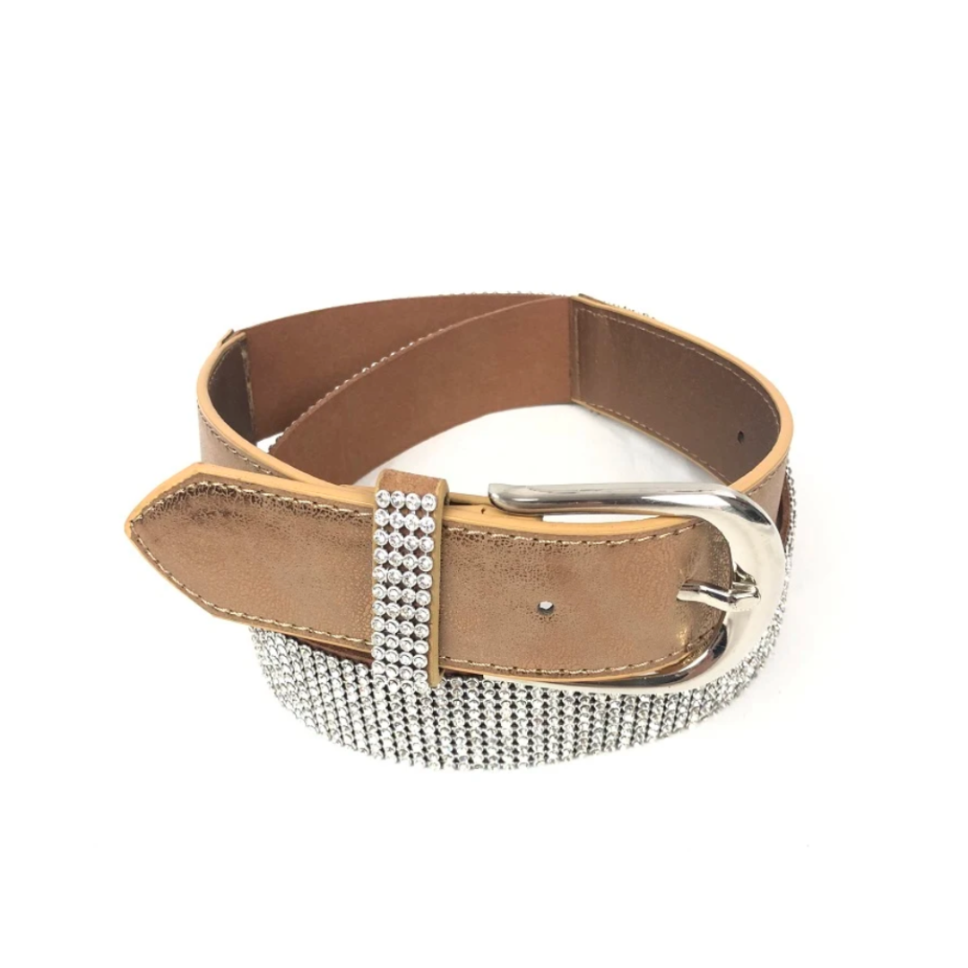 Cette ceinture en matière synthétique séduit par son style glamour et audacieux. Elle se distingue par un ornement de strass étincelants positionné sur la boucle et en frange décorative, apportant une touche de brillance et de sophistication. Sa texture légèrement veloutée et ses coutures apparentes soulignent une finition soignée. Dotée d'une boucle métallique argentée au design arrondi, elle combine élégance et caractère. Parfaite pour rehausser une tenue de soirée ou ajouter une note éclatante à un look plus sobre, cette ceinture incarne un accessoire à fort potentiel stylistique.