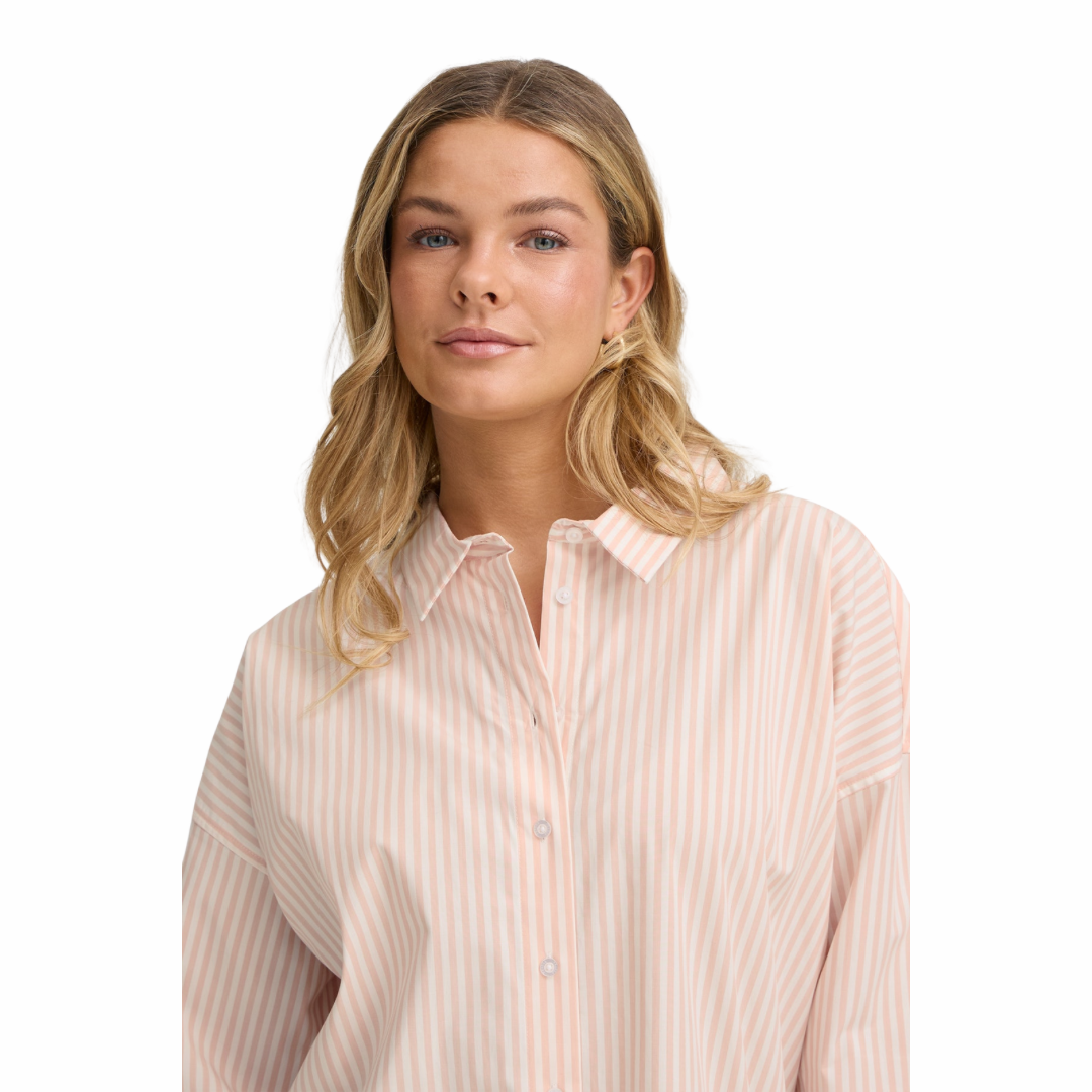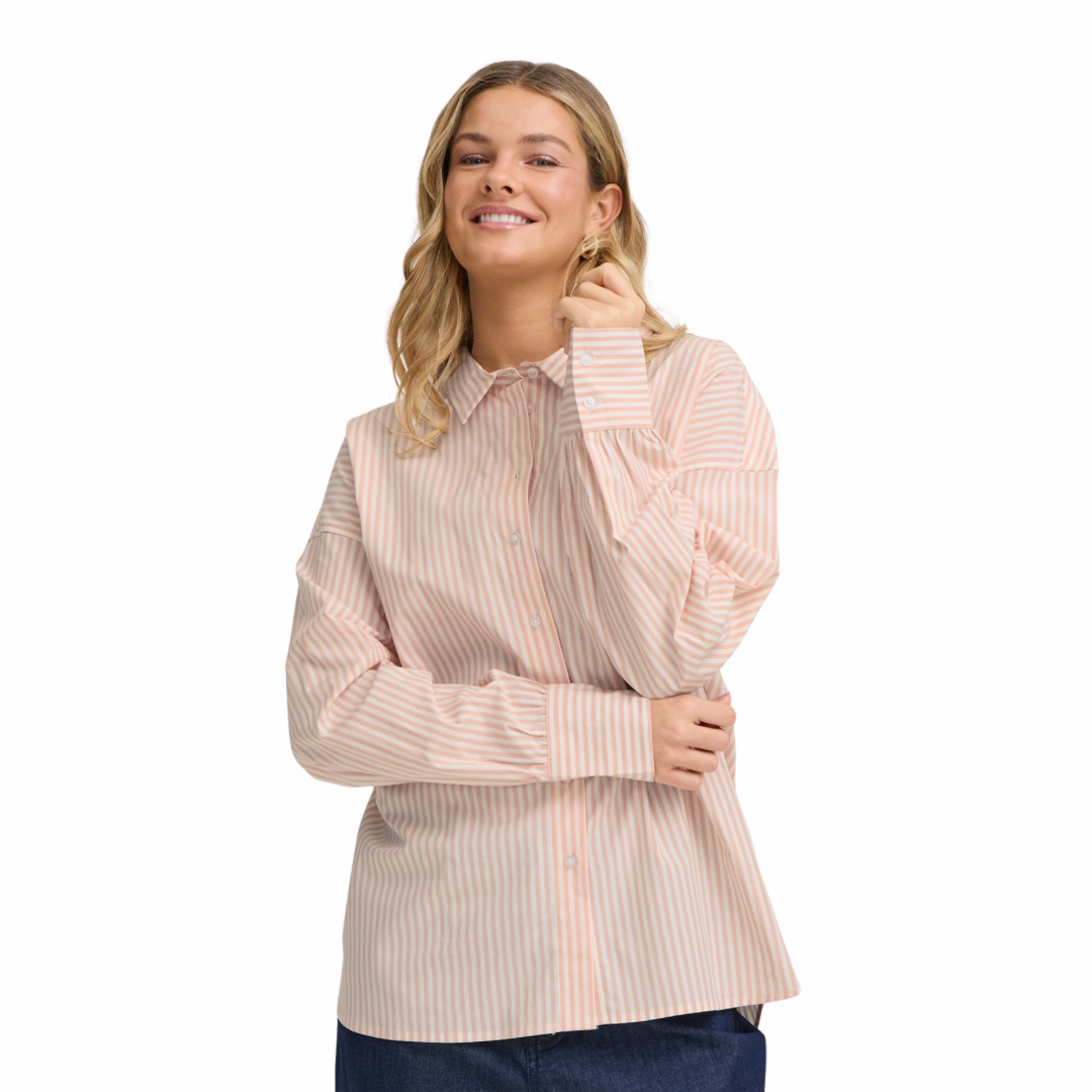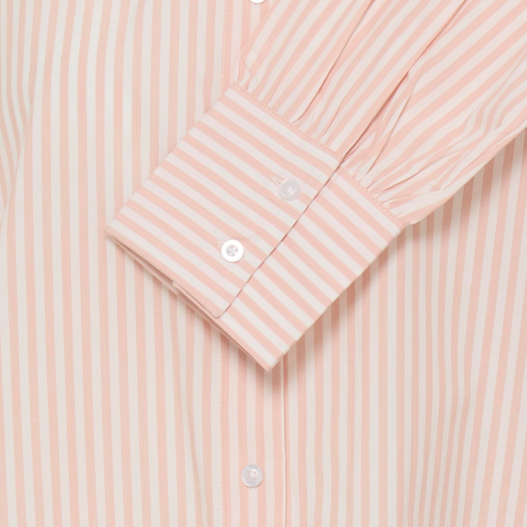 Cette chemise à rayures présente une coupe droite, un col pointu classique et une fermeture boutonnée sur le devant. Les manches longues à larges poignets