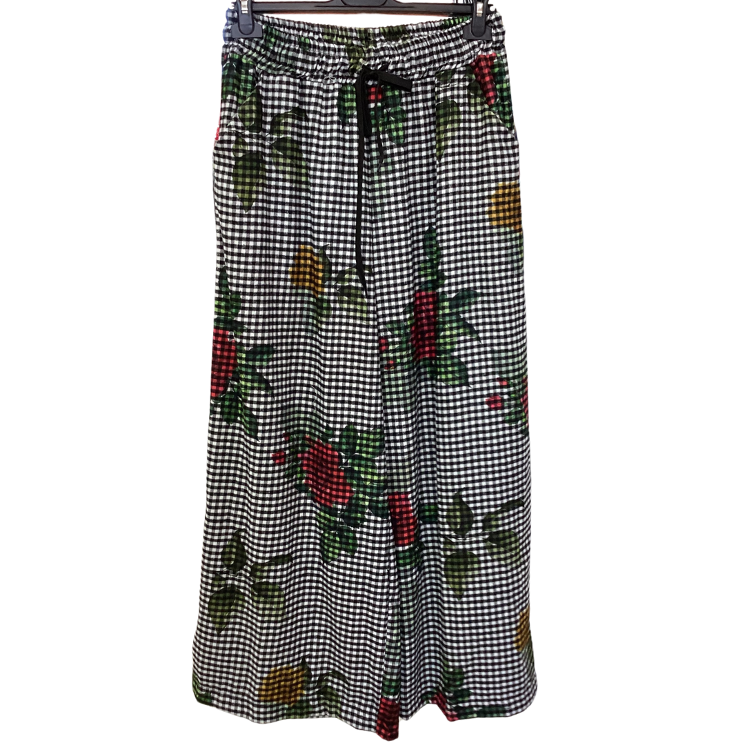 PANTALON À CARREAUX FLEURIS