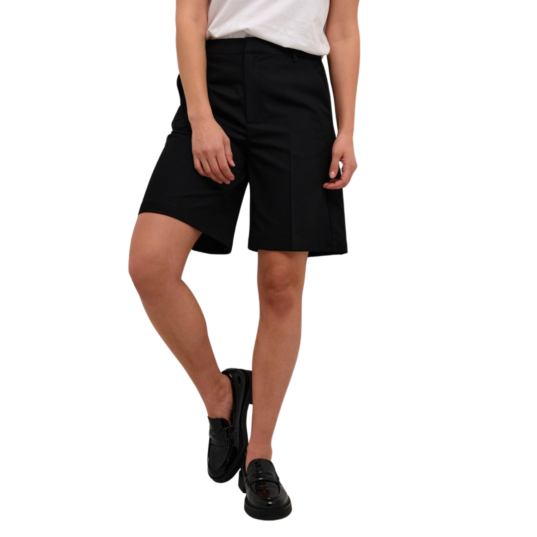 Le short KAsakura est un short intemporel que vous pouvez porter en toute occasion. Il présente une taille mi-haute avec une ceinture classique et une fermeture éclair. Le short a des jambes larges et droites, et il descend jusqu'aux genoux. Il possède des poches latérales et des poches arrières passepoilées.Coupe