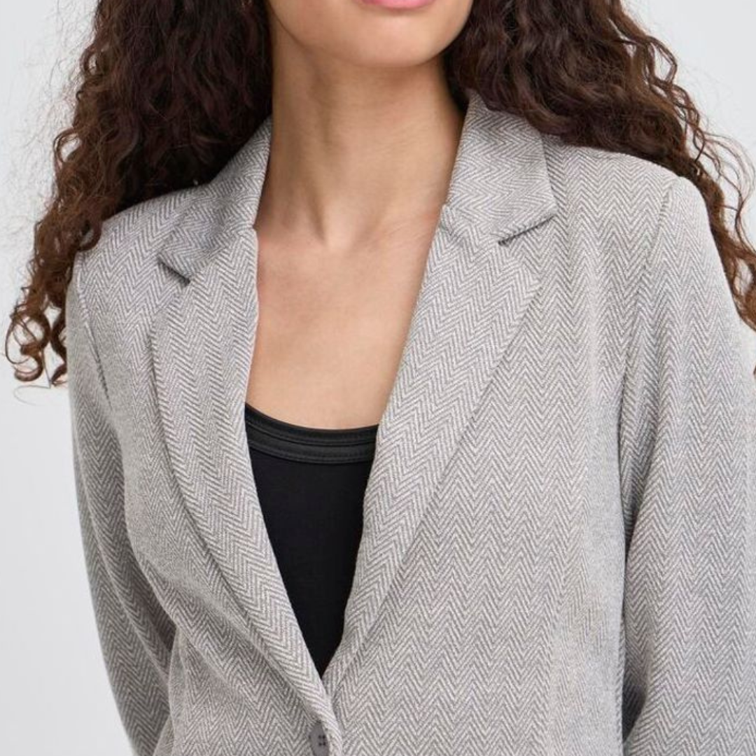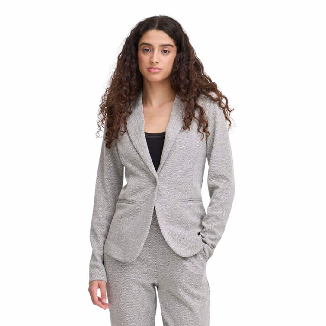 Ce veston en jacquard de la marque ICHI offre une allure élégante et contemporaine.
