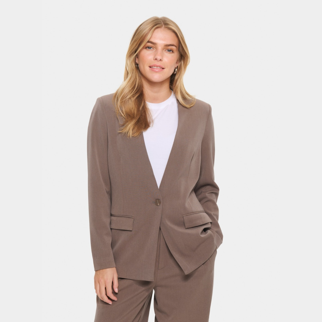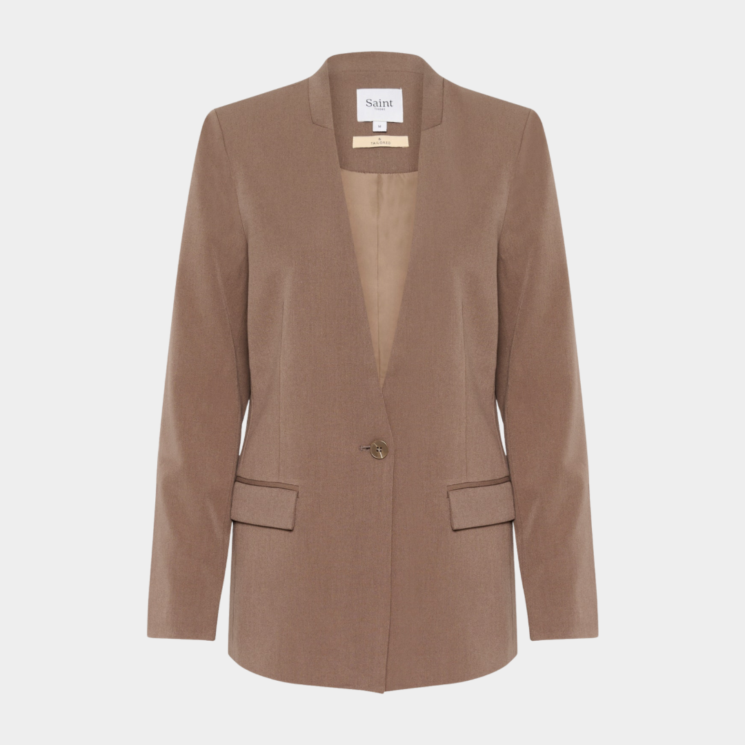 Blazer ajusté marron chaud, avec fermeture à un seul bouton et épaules structurées. Doté de poches à rabat et d'un décolleté en V profond pour un look épuré et minimaliste. Entièrement doublé, il présente une coupe droite. Le mannequin mesure 177 cm et porte une taille S.
