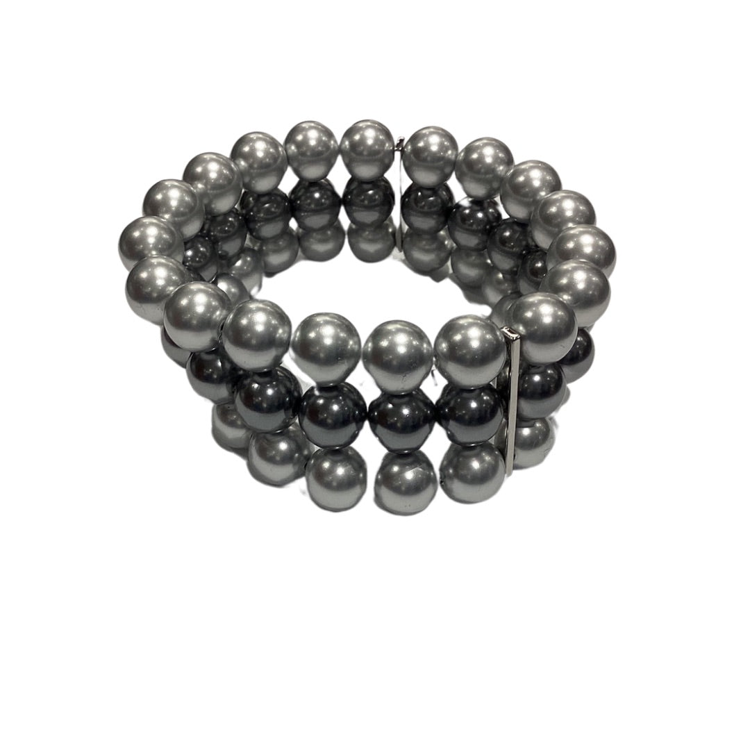 BRACELET CARACOL NOIR SIMPLE EN CUIR VÉRITABLE AVEC PERLES DE VERRE ET FERMOIR MAGNÉTIQUE$25.00