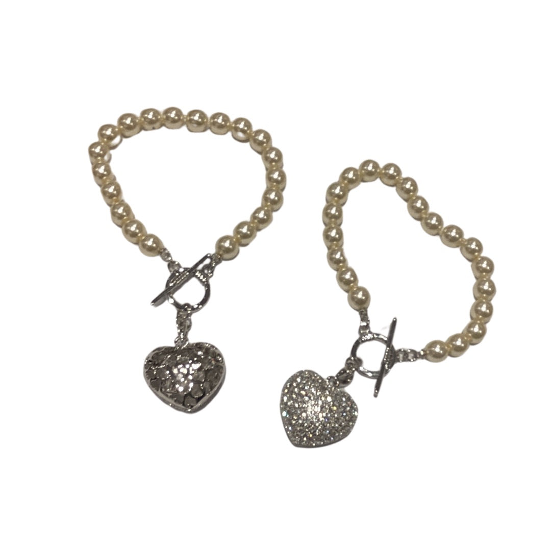 BRACELET EN PERLES CRÈME AVEC PENDENTIF CŒUR