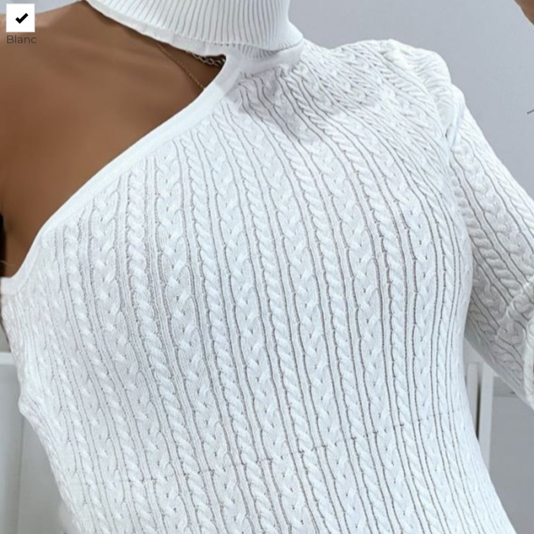 CHANDAIL À MAILLE TORSADÉE COL ROULÉ ET MANCHES UNIQUE