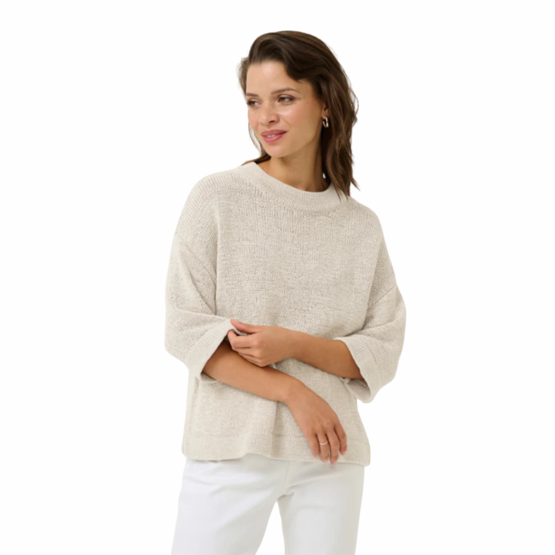 Ce chandail Kaffe est composé de 75 % de coton et 25 % de nylon, offrant un mélange doux et résistant.