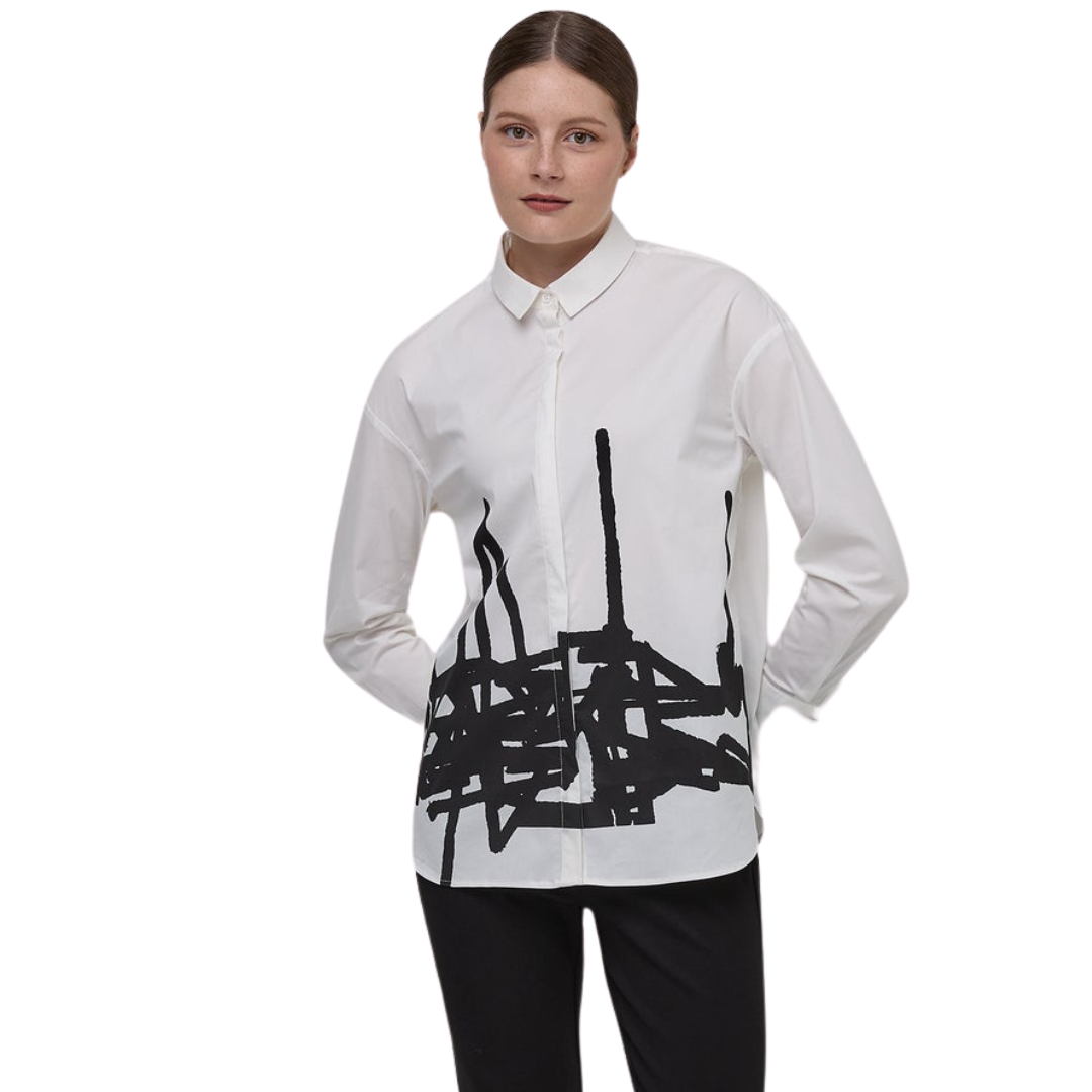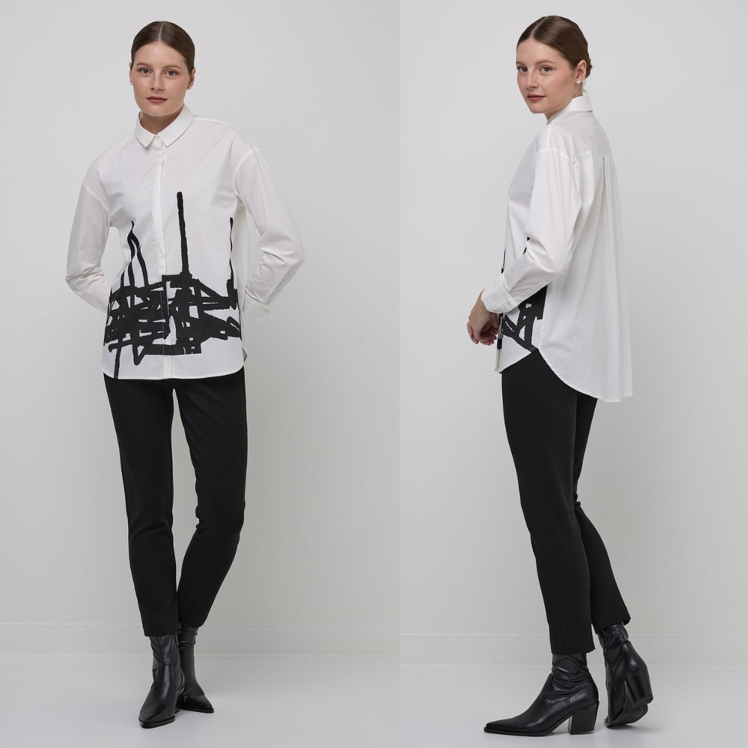 CHEMISE À MANCHES LONGUES. IMPRIMÉ CONTRASTANT AU DEVANT.