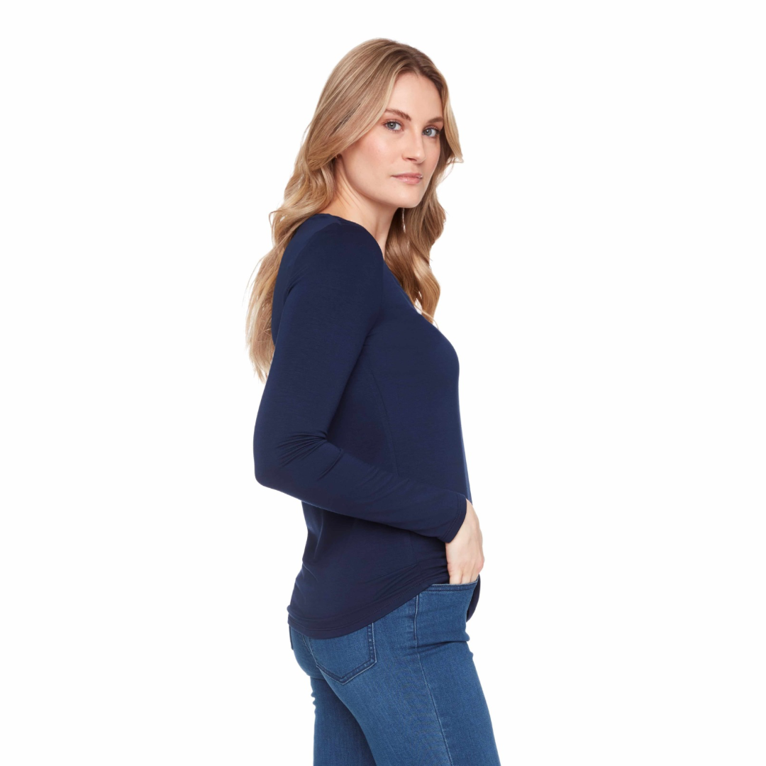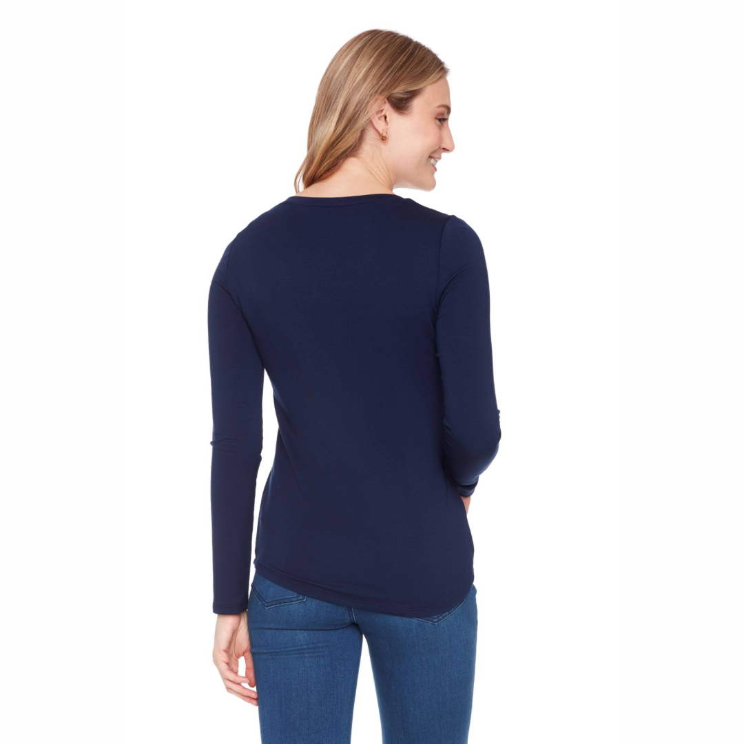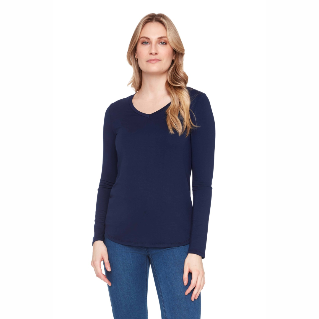 HAUT UNI À MANCHES LONGUES ET COL EN V
