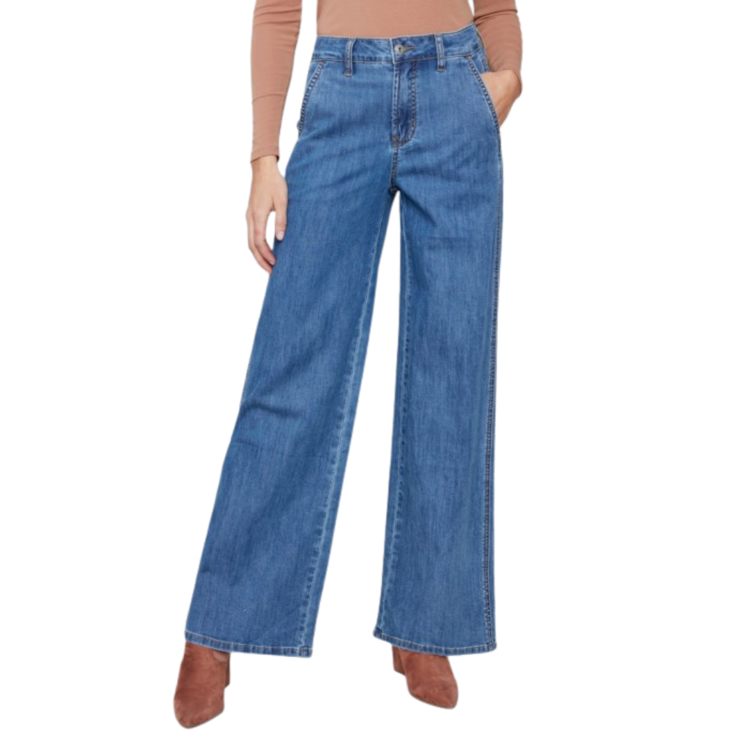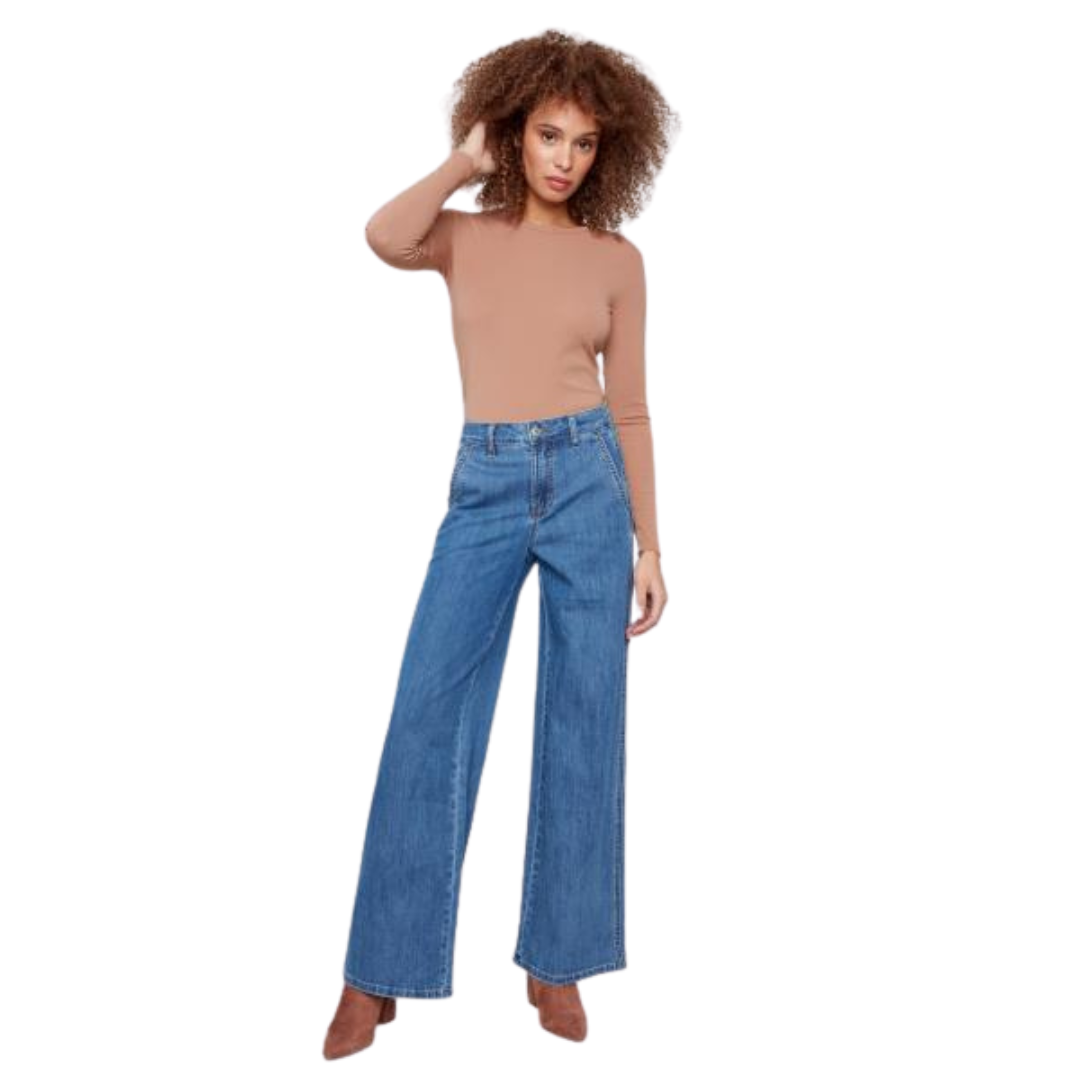 Pantalon en denim extensible à jambes larges avec poches fendues