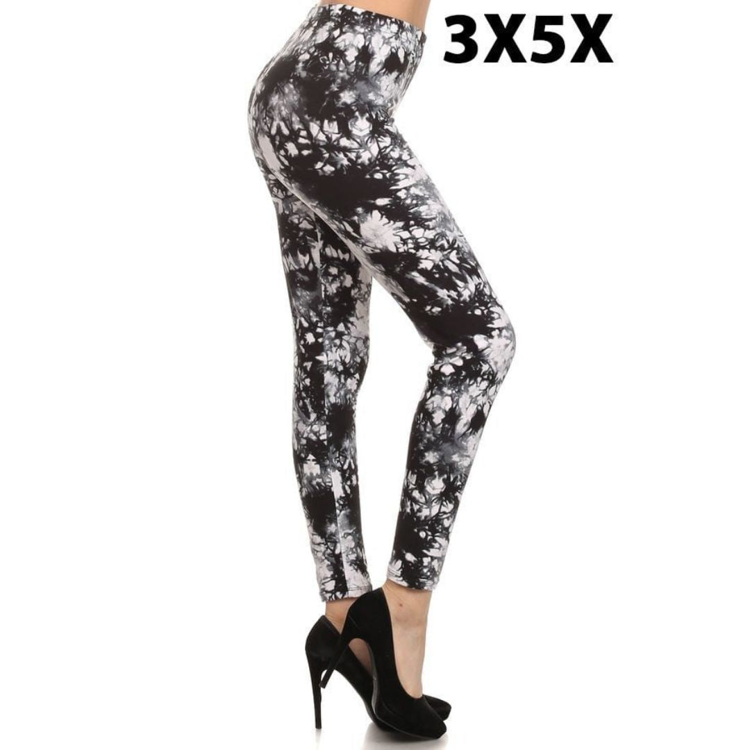 Description: Legging en tricot extra plus imprimé tie-dye avec ceinture élastiquée. Taille unique, 10 pièces par paquet.