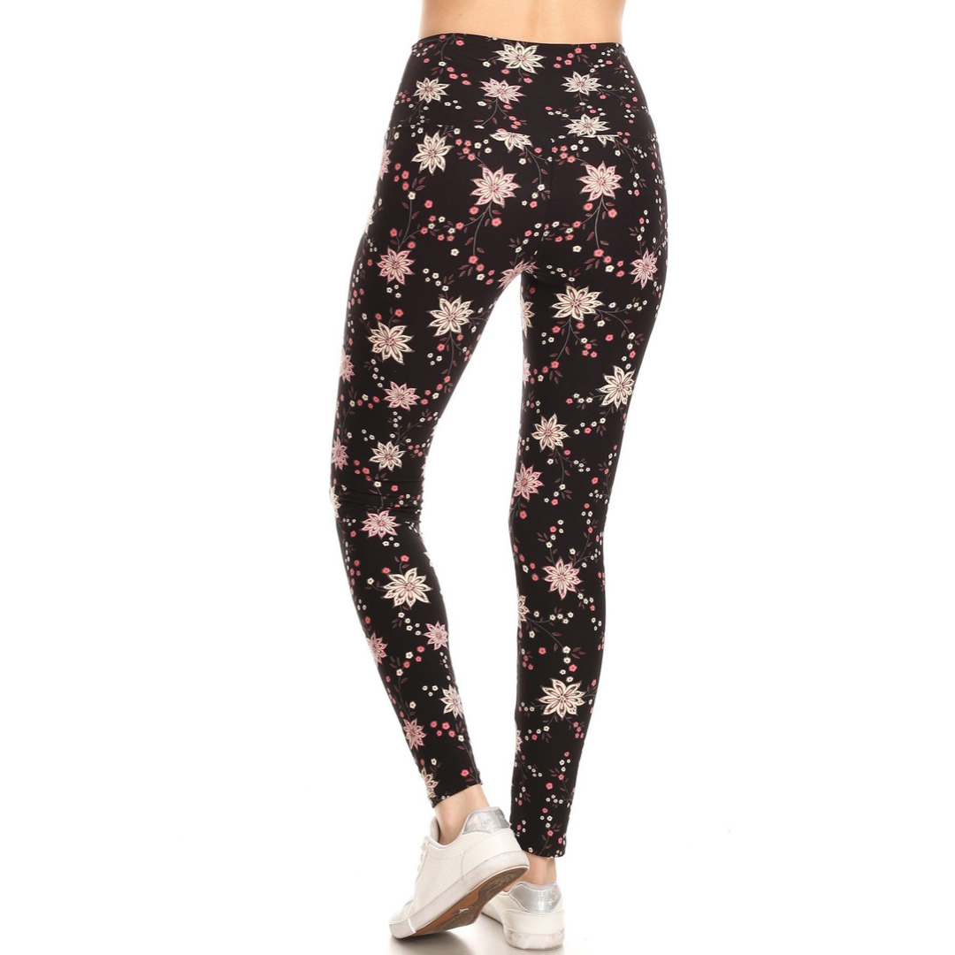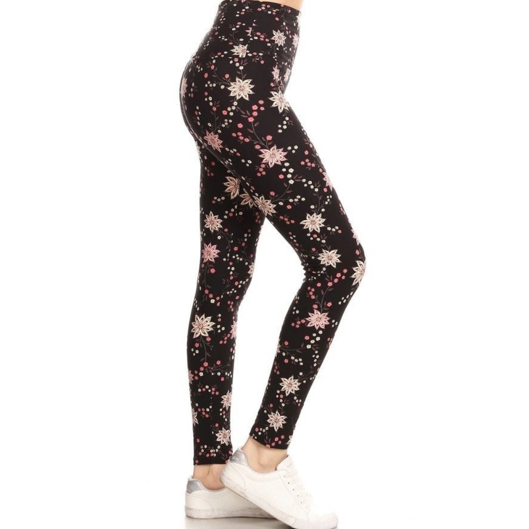 Les branches de fleurs de cerisier étoilé sont saupoudrées sur un fond de minuit. Associez ces leggings de yoga avec un haut blanc ou rose et une écharpe douillette pour bien commencer la journée.