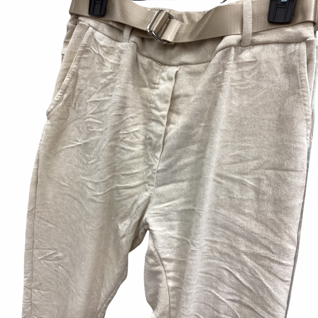 PANTALON VELOURS ÉCRU AVEC CEINTURE